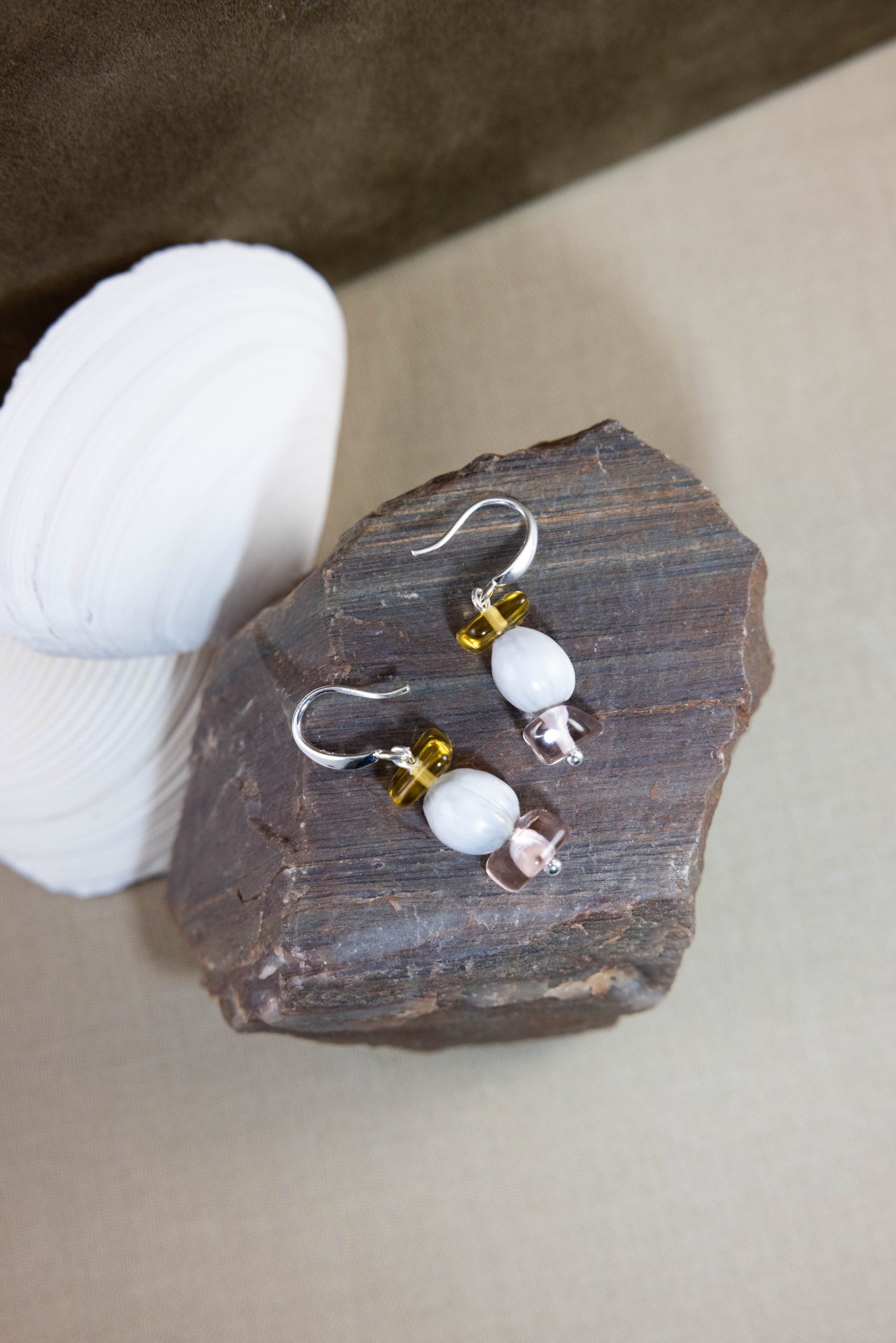 3/4″ long, 1 piece shiny honey yellow glass, 1 piece of shiny light pink glass, 1 American Indian teardrop healing bead, stacked top to bottom. “Balancing,” reminds you to take time for yourself to restore a heralthy balance, whether that be breath work, exercise, stillness, playfulness, gardening, and so on. Healing Stackables are masterfully handcrafted from recycled glass tossed aside, rebirthing as unforgettable recreated treasures. The Trail of tears healing beads came to be known to the American Indian tribes who were forced to march 13,000 miles from the eastern regions of the United States to Tennessee and Oklahoma, wherein many died along the way. In time, stalks of corn-like pods sprung from the ground and it was said to be the fallen ancestors of American Indians guiding and healing from their place in the universe. The pair you order will be made and meant for you. This item is available for Reorder. To place an order, please see Reorder link. Keep in mind each pair will be uniquely handcrafted from recycled glass. Lightweight. Built with sterling silver hooks and rings.