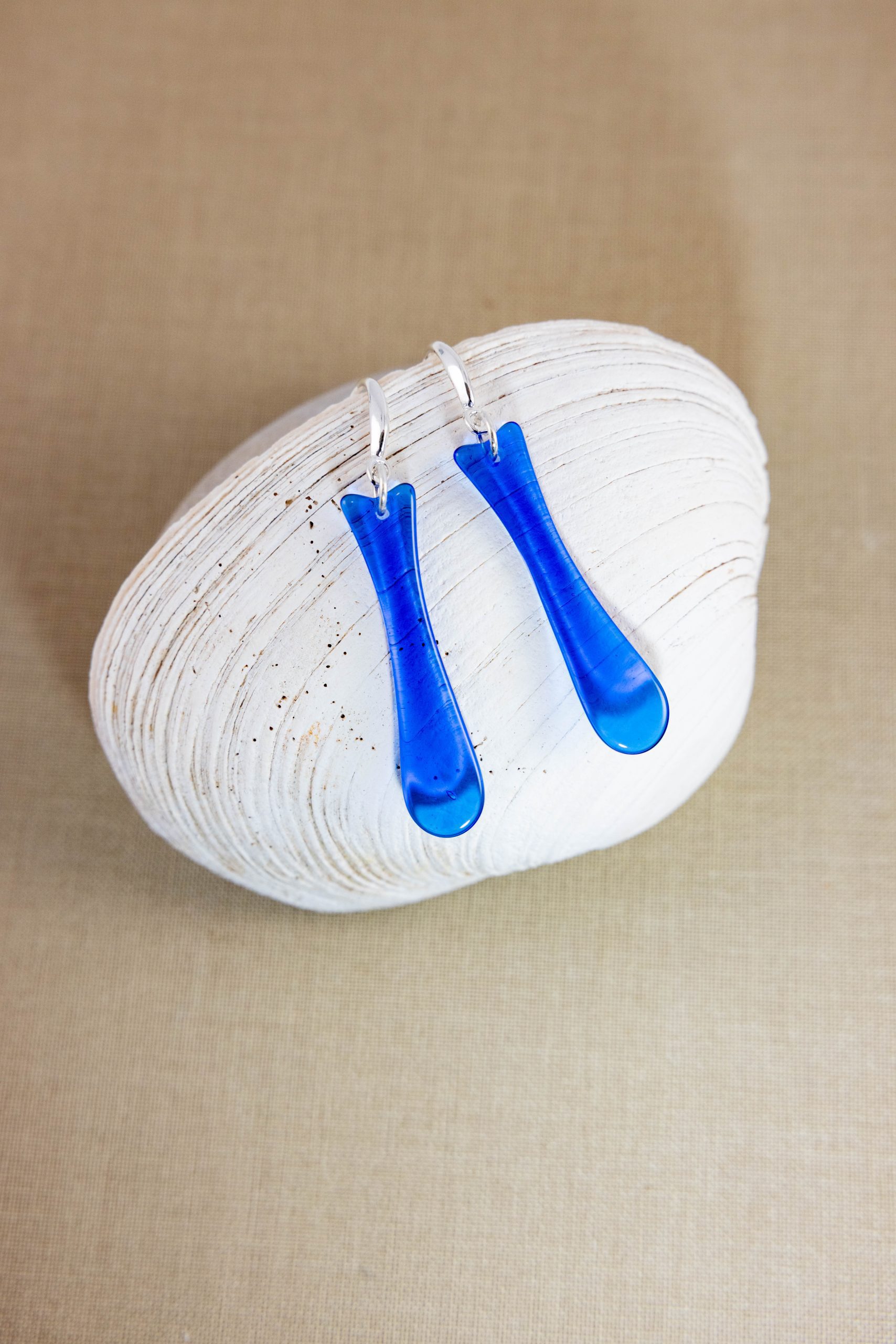 1 1/2″ long clear sea blue, fish shaped glass appear with endless possibilities. You will bring these gorgeous sea blue fish to life as you swim in your endless sea of possibilities. Catch this one of a kind “Blue Fish” pair while you can. Lightweight. Built with classy sterling silver hooks and rings.