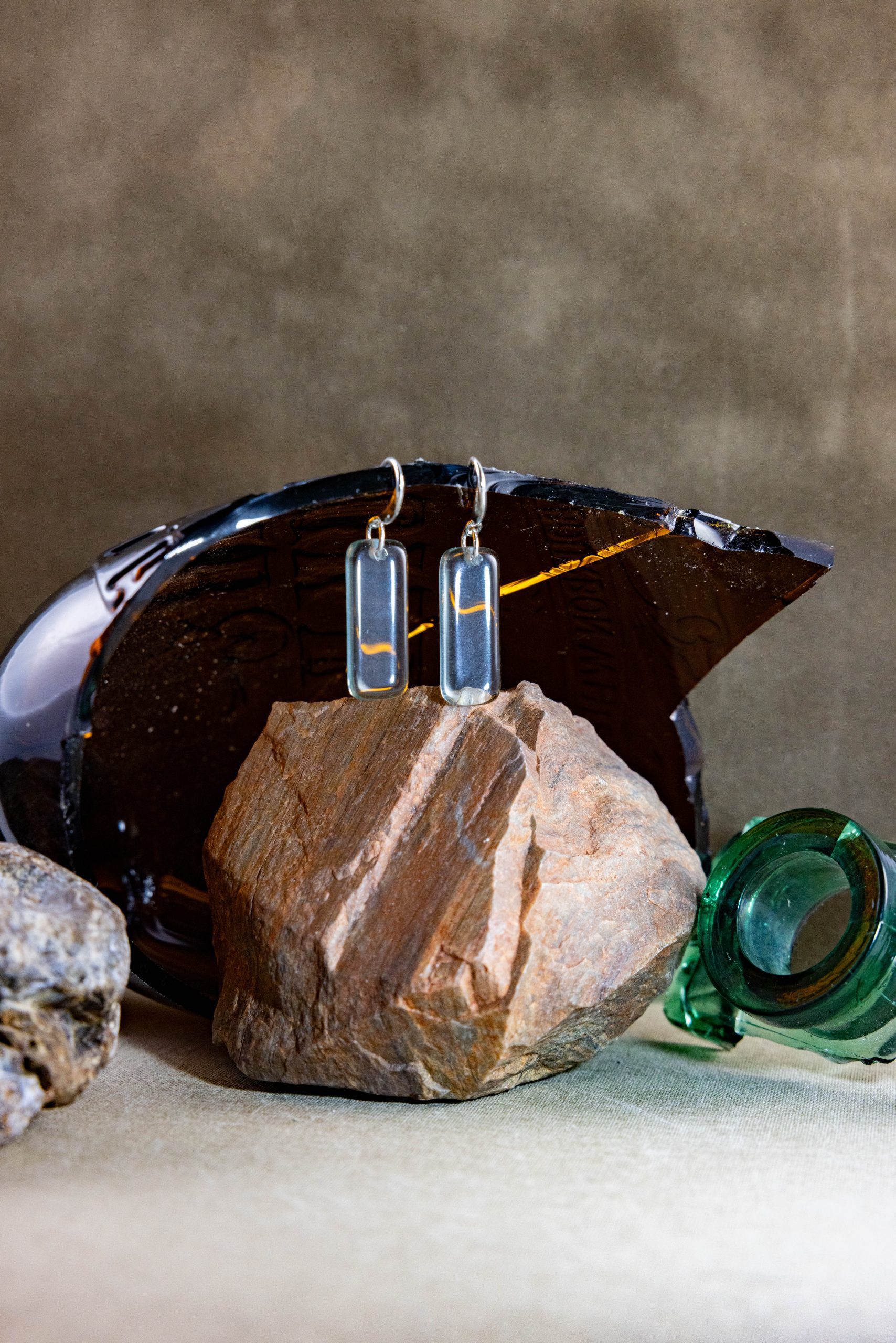 1″ long, clear with a tint of light blue shiny glass rectangles, masterfully handcrafted, finely refined, narrow four sidided, “Elegant Blue Glass Rectangles,” reach below your lobe with an elegant glow. Once forgotten, now unforgettable! This item is available for Reorder. To place an order, please see Reorder link. Keep in mind, each set will be hand made with unique characteristics. Lightweight. Recycled, Built with classy sterling silver hooks and rings.