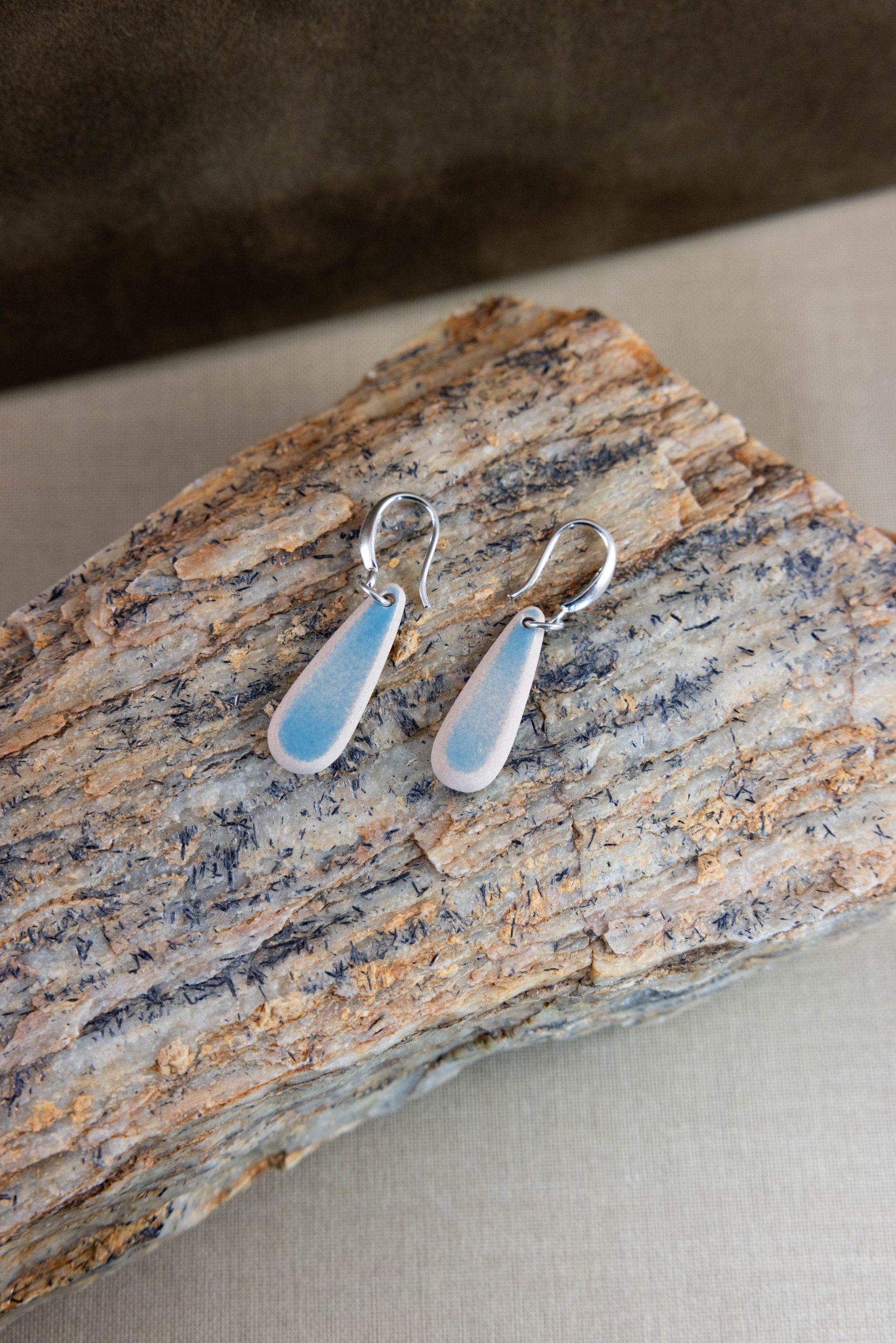 1″ long, baby blue with a faded matte finished ceramic, narrow teardrop shaped, hand shaped. “Faded Baby Blue Overalls,” are casual, classy, and fun. Share the perfect you effortlessly whether it’s with overalls, blue jeans, a dress, you are already simply the best. Backorder available. Please click Backorder link, detail your order request. Keep in mind, each set will be hand made with unique characteristics. Lightweight. Recycled, Built with classy sterling silver hooks and rings.