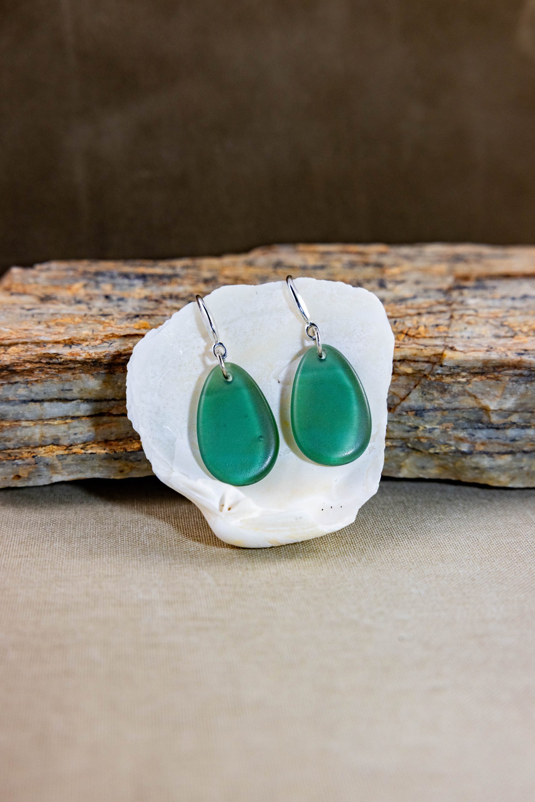 1″ long solid green rounded teardrop shaped glass, perfectly imperfect boasting natural bubbles inside. “A refreshing treat, “Bubblicious,” uniquely imperfect makes them perfect. Handcrafted with precision. One of a kind. Lightweight. Recycled, Built with classy sterling silver hooks and rings.