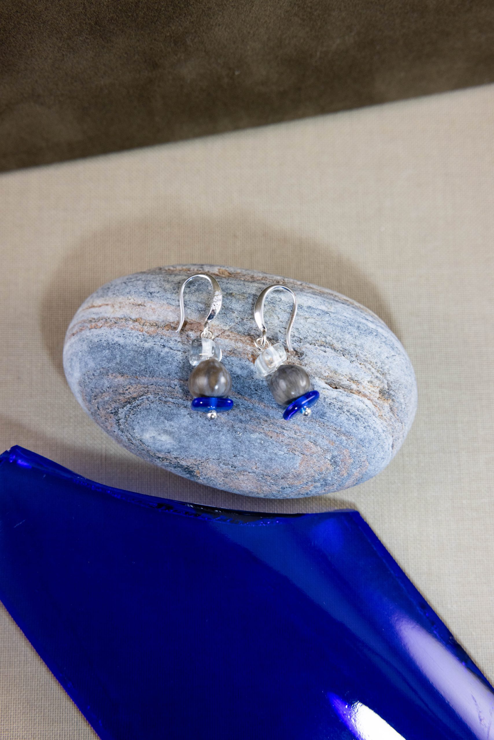 3/4″ long, 1 piece shiny clear glass, 1 piece of shiny deep blue glass, 1 American Indian teardrop healing bead, stacked top to bottom. “Sanctuary,” sets priorities in place, enlightening you to create a healing space around you. Masterfully handcrafted from recycled glass tossed aside, rebirthing as unforgettable treasures. Healing Stackables are masterfully handcrafted from recycled glass tossed aside, rebirthing as unforgettable recreated treasures. The Trail of tears healing beads came to be known to the American Indian tribes who were forced to march 13,000 miles from the eastern regions of the United States to Tennessee and Oklahoma, wherein many died along the way. In time, stalks of corn-like pods sprung from the ground and it was said to be the fallen ancestors of American Indians guiding and healing from their place in the universe. The pair you order will be made and meant for you. This item is available for Reorder. To place an order, please see Reorder link. Keep in mind each pair will be uniquely handcrafted from recycled glass. Lightweight. Built with sterling silver hooks and rings.